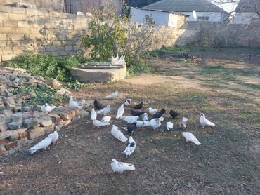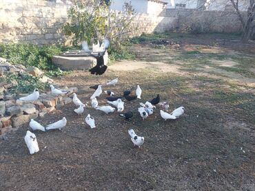 - Həyətdə sərbəst bəslənən, uçuşa öyrəşmiş göyərçinlər.