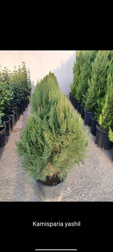 - Kamispariya yaşıl – həmişəyaşıl iynəyarpaq kolu. Sıx taclı, formaya salmağa yararlıdır. Həyətyanı sahə, bağ cığırları və girişlər üçün dekorativ həll. Günəşli və ya yarımkölgəli yerlərdə yaxşı inkişaf edir, torpaq nəmliyi orta olmalıdır.