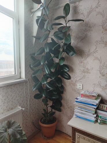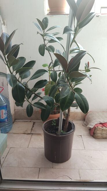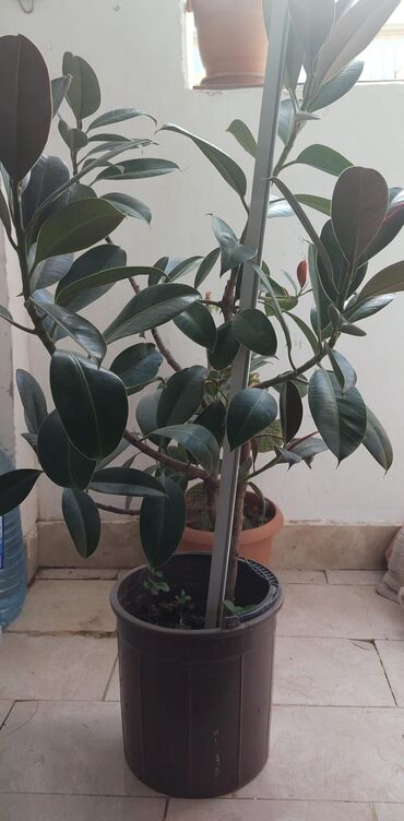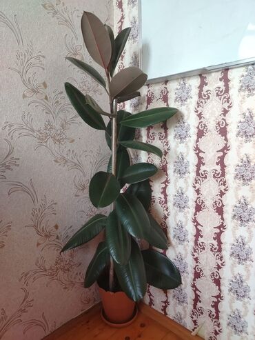 Böyüdülmüş dekorativ otaq bitkisi – Ficus elastica (Kauçuk ağacı).