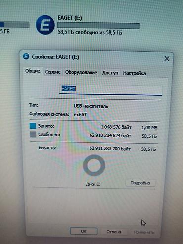 Qeyd: Disk xüsusiyyətlərində tutum 58.5 GB kimi göstərilir, bu istehsalçıların yaddaş hesablaması ilə bağlı standart fərqdir.