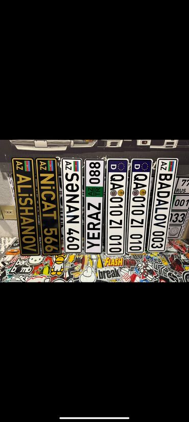 - Bu lövhələr dekorativ məqsədlidir; real dövlət qeydiyyat nömrəsi deyil.