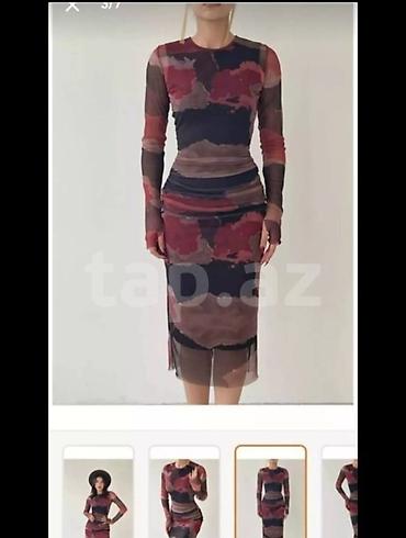 Rəng və naxış: Qara fon üzərində qırmızı, tünd qəhvəyi və bej tonlarda abstrakt print