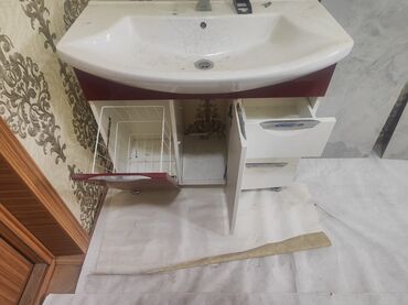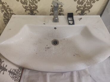 - Üst hissə: geniş, oval formalı keramika lavabo; tək qollu qarışdırıcı kran üçün hazır dəlik və mərkəzdə su axıdıcı.