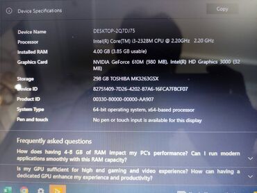 ◽Model : Lenovo Ideapad 330-15IKB ◽Prosessor : i5-7200U 2.71 GHZ ◽Ekran dioqanalı. 15.6 FHD İPS ◽Ram : 8 GB DDR4 3200MHZ ◽Yaddaş : 120 GB SSD ◽Video kartın növü : NVDIA GeForce MX110 (2GB) ◽Vəziy...