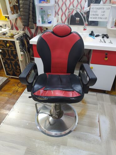 Bərbər/kosmetologiya üçün peşəkar kreslo - Material: keyfiyyətli eko‑dəri oturacaq və arxa hissə, dəmir karkas - Rəng: qara-qırmızı - Başlıq: tənzimlənən baş dayağı - Mexanizm: hidravlik ayaq peda...
