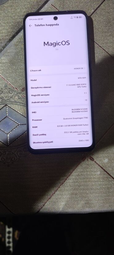 HONOR smartfon dəyərindən ucuz qiymətə satılır! qiymət razılaşma yolu ilə. TELEFON TAM İŞLƏK VƏZİYYƏTDƏDİR - Model: Arxa hissədə “HONOR” loqosu və “MATRIX AI VISION CAMERA” dairəvi kamera modu...