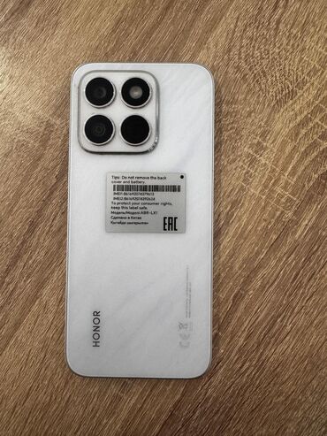 HONOR smartfon Model: ABR-LX1 (etiketdə qeyd olunub) Rəng: Ağ arxa qapaq, gümüşü çərçivə Girişlər və düymələr: - Aşağı hissədə USB‑C portu, mikrofon və səsucaldan qəfəsi - Sağ kənarda güc düyməsi ...