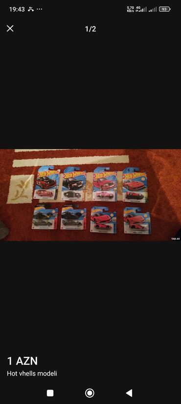 Biri5m Məhsul: Hot Wheels kolleksiya maşınları (kartlı, qablaşdırmada) Təfərrüatlar: - Brend: Hot Wheels (Mattel) - Miqdar: Şəkillərdə göstərilən müxtəlif modellərdən bir neçə ...