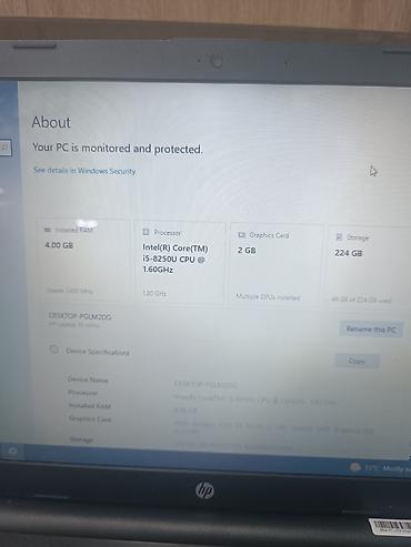 - Prosessor: Intel Core i5-8250U (1.60–1.80 GHz, 4 nüvə)
