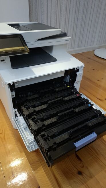 - HP 415A/415X seriyalı toner kartricləri ilə işləyir (şəkildə dörd rəngli kartric yuvaları görünür)