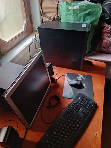 Dəyirindən ucuz,HP monitor və qara rəngli sistem bloku, həmçinin siçan və lazımi kabelləri əhatə edən masaüstü kompüter dəsti. Bu dəst evdə, ofisdə gündəlik işlər, təhsil və ya əyləncə üçün istifad...