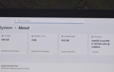 - Yaddaş: 943 GB (Windows-da görünən) 500SSD+500HDD 1TB
