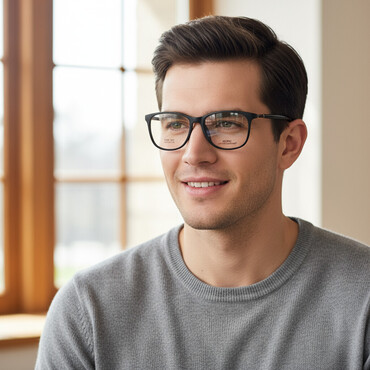 Şəffaf ön çərçivəli, dördbucaqlı-yuvarlaq (round-square) formalı optik eynək çərçivəsi. - Ön hissə: kristal-şəffaf asetat, qalın və möhkəm quruluş, burun hissəsində inteqrə olunmuş şəffaf körpü. ...