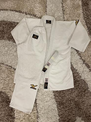 Mizuno mavi rəngli cüdo kimono dəsti - Brend: Mizuno (orijinal loqolu) - Rəng: tünd mavi - Komplekt: üst gödəkcə (gi) və şalvar - Material: qalın, toxumalı parça; möhkəm tikişlər, gücləndirilmiş y...