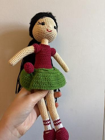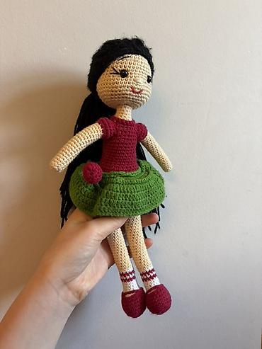 Amigurumi toxunma kukla - çatdırılma var Əl işi toxunma amigurumi kukla - Yumşaq ipdən hazırlanıb, içliyi yüngül və formaya saxlayan materialdır - Uzun qəhvəyi saçlı, rəngli bant aksesuarı ilə - A...