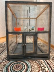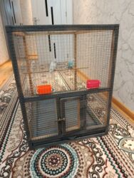 Quş qəfəsi dəsti - Material: metaldan tel karkas, möhkəm plastik altlıq (yaşıl rəngdə çıxarıla bilən çekmece tipli dib) - Ölçü: orta həcmli, dalğalı papuqay, kanareyka, zebro finç və oxşar xırda/q...