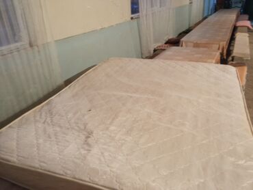 Ortopedik deyil iki nəfərlik döşək - Ölçü: təxmini 180x200 sm (queen/iki nəfərlik). - Rəng: açıq krem parça, romb naxışlı kapitone üst qat. - Kənarlar: möhkəmləndirilmiş bordür və perimetrlə tutac...
