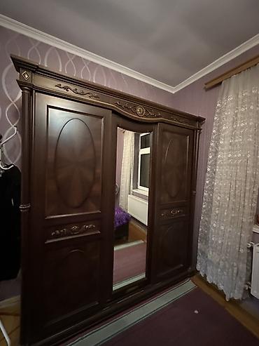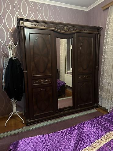 Yataq otağı mebel dəsti Tərkibi: - İki nəfərlik taxta çarpayı (başı yumşaq dəri örtüklü, naxışlı oyma dekor) - 5 qapılı iri qarderob (mərkəzdə paltar asmaq üçün bölmə, aşağıda çekmece, yanlarda rə...