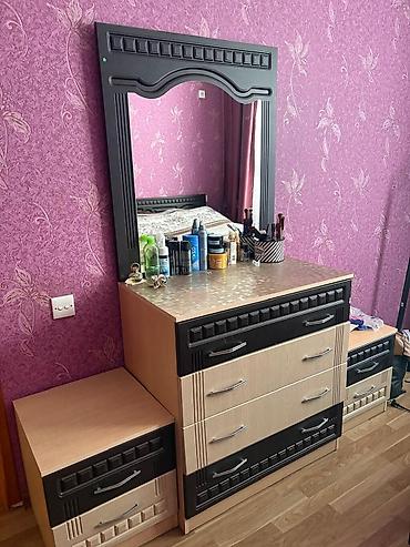 490₼ Yataq mebeli – TƏCİLİ SATILIR Ünvan: H.Aslanov Qeyd: baza yoxdur Dəst tərkibi: - Geniş iki nəfərlik çarpayı, yumşaq başlıqla - 3 çekmecəli tumbalar (yan tumbalar) - Güzgülü komod (4 çekmecə) ...