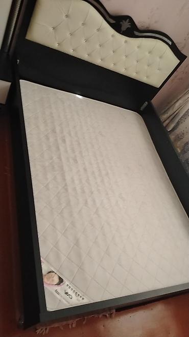 - Cüt nəfərlik çarpayı: qara karkas, yumşaq krem rəngli kapitone başlıq, dekor elementləri ilə.