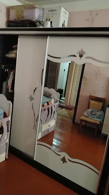 - 3 qapılı sürgülü şkaf: ortada böyük güzgü, dekorativ oyma naxışlar, içəridə asılqan və rəf bölmələri.