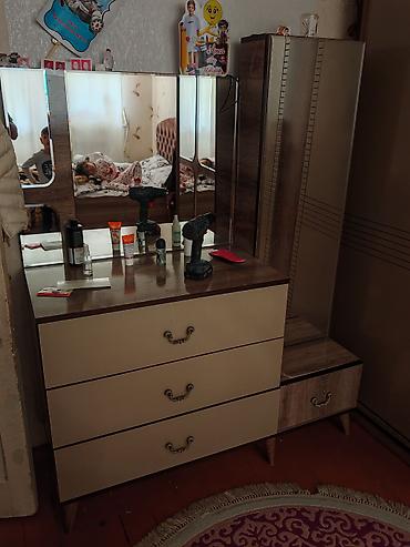 - Tualet masası/drezuar: 3 geniş çekmece, üst hissədə iri masa səthi, çoxseqmentli güzgü paneli.
