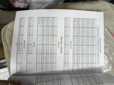 - Aydın şriftlə çap, səhifələrdə testlər bloklara bölünüb, cavab variantları A–E