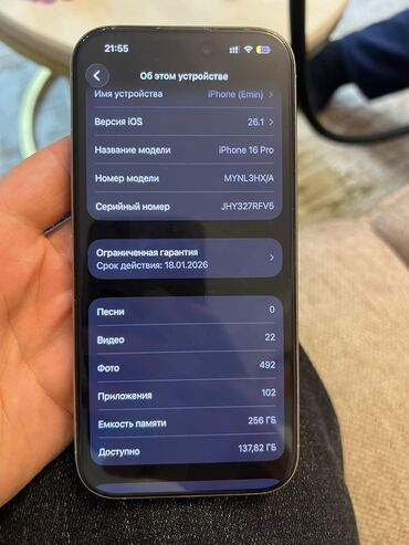 Здравствуйте, продаётся IPhone 16 pro 256GB pil 100% чарапин никаких нету от нового не отличается. Гарантия до апреля есть.