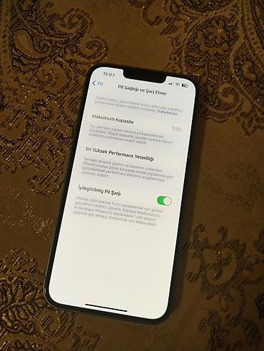 Ideal veziyyetde 13 pro max 512 gb satilir. Zavod 77 pil. Hec bir problemi yoxdur.Yalniz ekranda yungul ciziq var.barter yoxdur.
