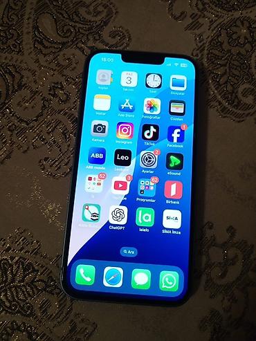 Apple iPhone (mavi rəng) - Korpus: Şüşə arxa panel, düz alumini̇um kənarlar, mavi rəng. - Ekran: Tam ekran ön panel, Face ID üçün ön sensör çıxıntısı olan OLED displey. - Kamera sistemi: Arxa tər...