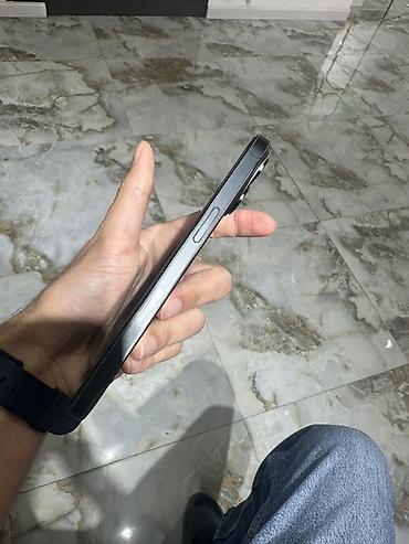 Apple iPhone (qara rəng). Dynamic Island ekran kəsiyi, üçlü arxa kamera bloku və mat arxa səth. Ekranda Face ID üçün ön kamera və sensorlar. Əsas xüsusiyyətlər: - Ekran: tam ekran OLED, Dynamic Is...