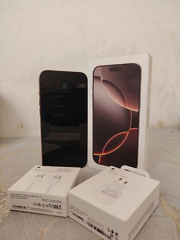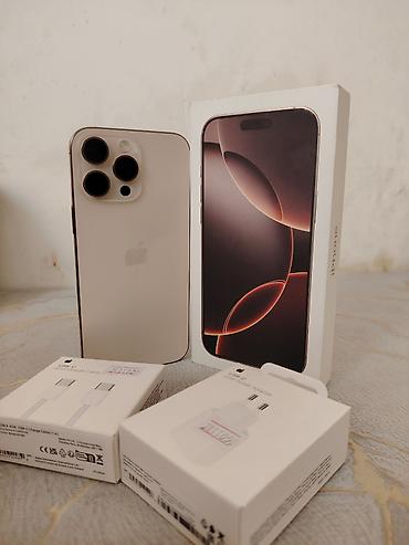 Apple iPhone – 16 Pro 128 GB Desert Titanium 93 pil 420 devir Təzədən seçilmir ideal nöqtəsiz cızıqsız Qiymətdə razılaşmaq olar usdündə 4 5 kabro hədiyə