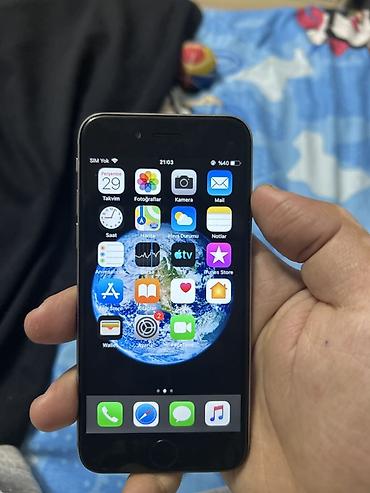 Apple iPhone 6, Space Gray rəng. Hər bir şeyi işləkdir,ideal vəziyyətdədir icloudda deyil.Tiktok,İnstagram,Telegram kimi proqramları açır. Ekranda biraz aralanıb amma işləməyinə problem yaratmır