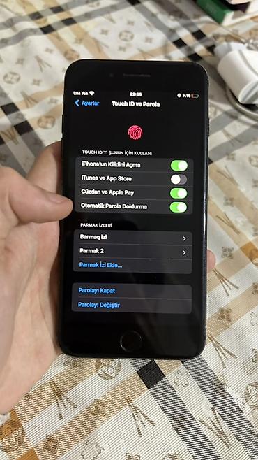 Apple iPhone 7, qara rəng 128 yaddaş 32 lərlə səhv salmayın telefon ideal vəziyyətdədir sadəcə pili dəyişib 100 pil zaryatka saxlamağı çox yaxşıdır heç bir problemi yoxdur barmağ izi işlək bütün pr...