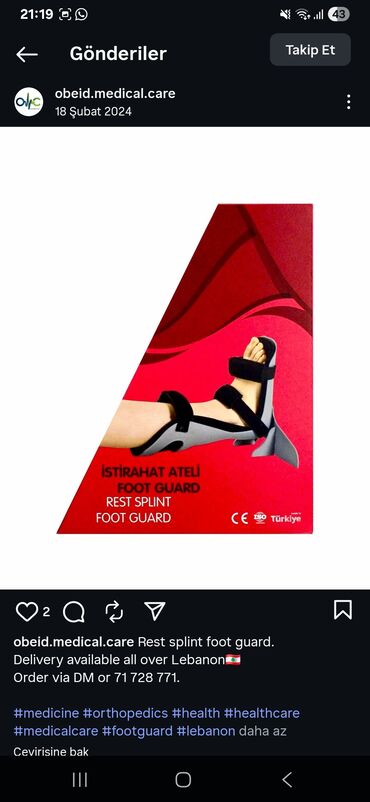 Məhsul: İstirahət atəli – Foot Guard (Rest Splint Foot Guard), Türkiyədə istehsal