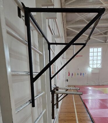 - Üst hissə: dartınma üçün üçbucaq konstruksiyalı, divar pilləkəninə (İsveç pilləkəni) qarmaqla bərkidilən çıxıntılı turnik çərçivəsi. Geniş tutacaq aralığı, neytral və dar tutuş üçün uyğun boru seqmentləri.