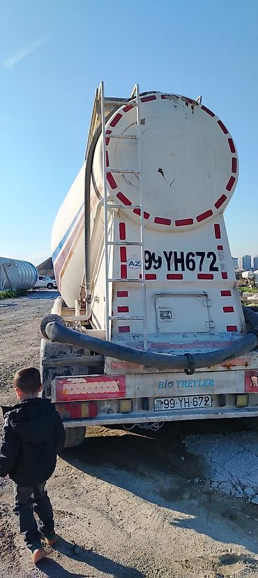 - Qoşqu: toz-halında yüklər üçün silos tipli tanker (sement, kül, əhəng və s.) – yuxarıdan servis meydançası və məhəccər, aşağı boşaltma boru xətti
