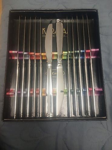 - Tərkib: desert/şirniyyat üçün bıçaqlar və kərə yağı/pendir bıçağı daxil olmaqla çoxlu sayda paslanmayan polad bıçaq