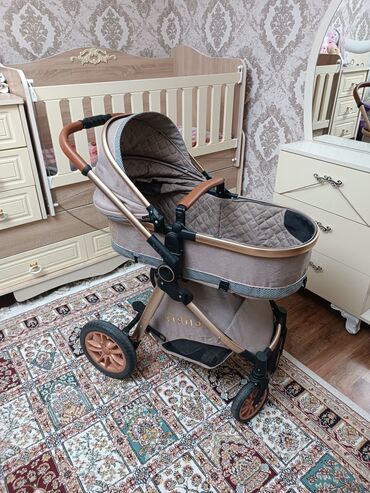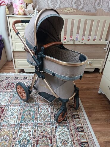 Uşaq arabası – bej rəng, lyulka tipli Xüsusiyyətlər: - Tam örtülü, geniş tənzimlənən kapot günəşdən və küləkdən qoruyur - Yumşaq lyulka hissəsi, içəridə heyvan fiqurlu naxışlı qoruyucu büzməli kən...