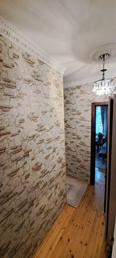 - Divarlar: dekorativ “daş” fakturalı oboylar, klassik poliuretan plintus və karnizlər.