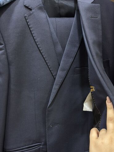 Qeyd: Etiket şəkillərində bir neçə fərqli marka və ölçü məlumatı mövcuddur; göstərilən kostyumda tünd rəngli, klassik kəsimli model təqdim olunur. Qulluq təlimatı etiketdə: yalnız quru təmizləmə.