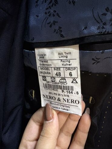 - NERO & NERO (Made in Turkey) – Model 58-ZARA, Ölçü 48, Drop 6, tərkib 65% PS, 35% Viscose, yalnız quru təmizləmə