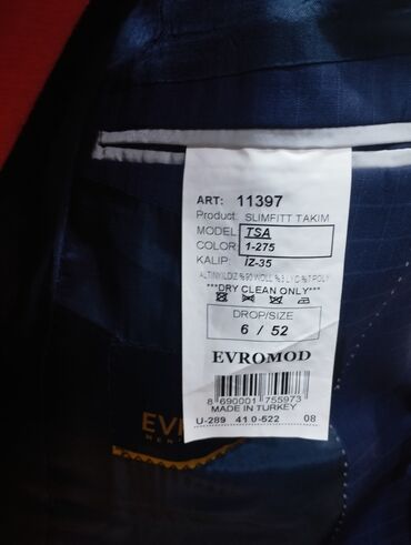 Cacharel kişi kostyumu – tünd göy rəngdə, klassik dizayn. - Brend: Cacharel (etiketdə göstərilib) - Dəst: gödəkçə + şalvar - Parça tərkibi: 100% yun (gödəkçə) – etiket məlumatına əsasən; astar 100...