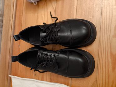 Qara rəngli qalın altlıqlı bağlamalı ayaqqabı ( temudan alınıb ölçü böyük olduğu üçün satıram yenidi) - Model: klassik derby üslubunda, yuvarlaq/qutuvari burun - Rəng: tam qara - Üst hissə: hamar ...
