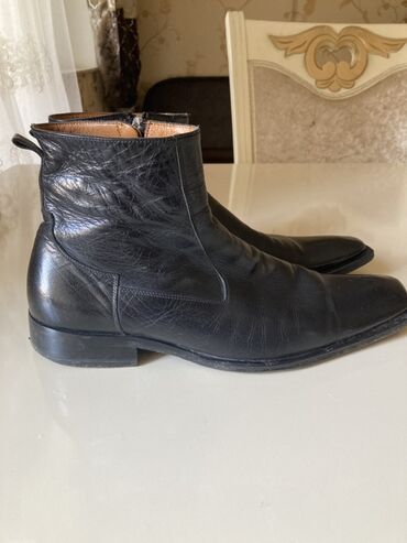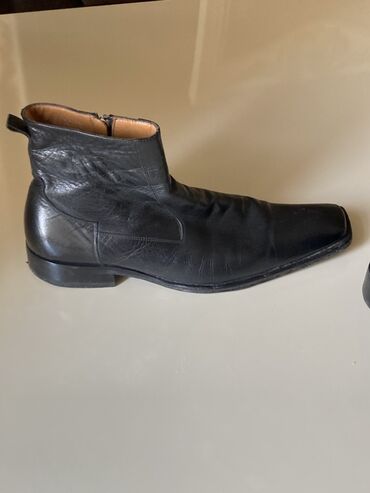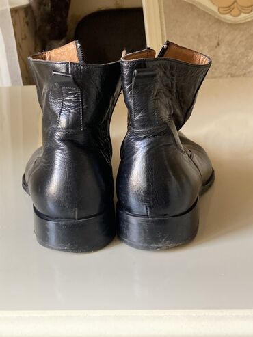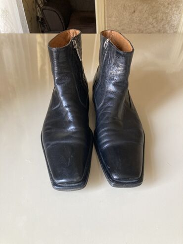 Qara dəri kişi botları - Model: Klassik kvadrat burunlu, qısa boğaz