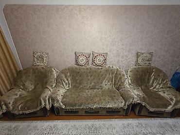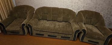 - Ölçülər (təxmini): divan 3 oturacaqlıdır; kreslolar geniş tək oturacaqlardır
