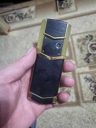Vertu Signature üslubunda lüks düyməli telefon - Korpus: qara və qızılı tonların kombinasiyası, metal çərçivə - Arxa tərəf: teksturalı qara dəri örtük, metal vint detalları - Klaviatura: klassik T...