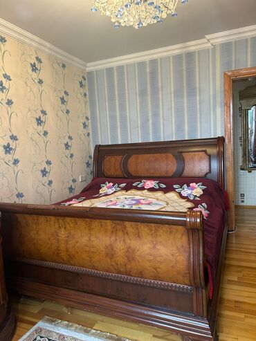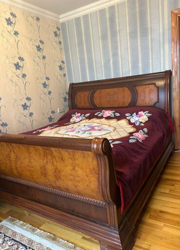 Taxta yataq otağı mebeli dəsti Kiraye ev verilir - Klassik üslubda massiv ağacdan hazırlanmış yataq dəsti - Komplekt: iki nəfərlik çarpayı (taxta başlıq və ayaqlıq, oyma dekor), iri üçqapılı şkaf (...