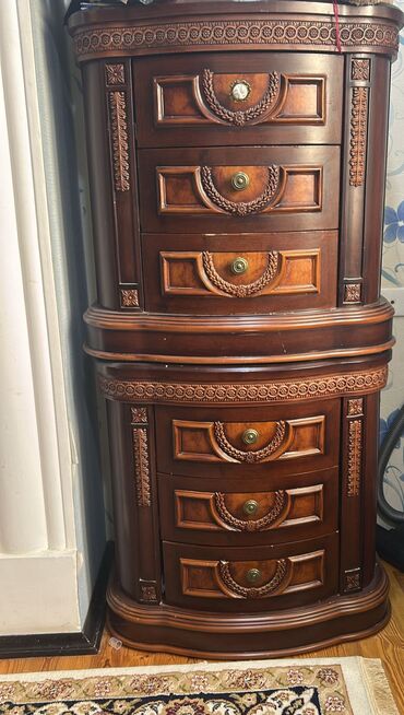 Klassik üslubda dəbdəbəli yataq otağı dəsti yaxşı vəziyyətdə hamsi birlikdə satılır . .... - Material: tünd qəhvəyi masiv ağac (ağac üzərində dekorativ oyma naxışlar) - Dəst tərkibi: • Böyük iki ...