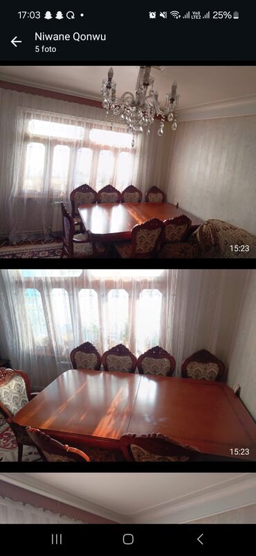 - Dəst: böyük düzbucaqlı masa + 8 ədəd stul